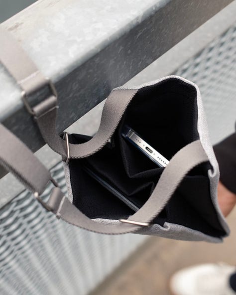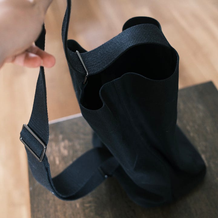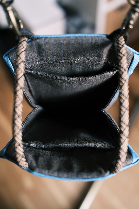 I imagine this bag working well under an unbuttoned jacket or shacket. You’d only see the cross belt and the rope handle hanging down. Which means those visible elements really have to be on point—quality and design-wise.