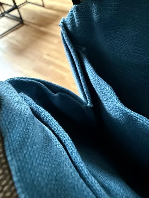 That process led to some happy accidents. For example, I discovered that folding the pockets instead of sewing them onto the lining creates these smooth transitions: